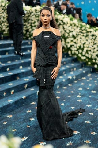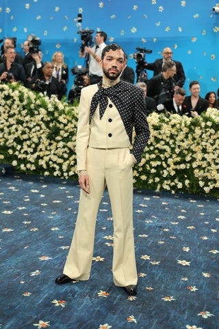 This year’s Met Gala co-chair and truly Black dandy extraordinaire, Colman Domingo, hit it out of the park in this Valentino. The man can WEAR a suit. My personal favorite touch is the white vest paired with cream pinstriped shirt. White & cream! Pure class, my friends!