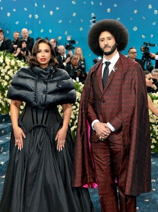 I quite enjoy Kap’s ensemble, but I’m really here for his wife Nessa’s capelet. I have long been a fan of the Moncler puffer collection and this is absolutely perfect to the night’s theme! I will not be elaborating, but it is!
