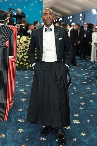 Wicked costume designer and hot commodity, Paul Tazewell, epitomizes Black dandy splendor in a Thom Browne skirt— I never see people in these and they are some of my favorite pieces in contemporary fashion. Who’s doing it like Mr. Browne?? These two are a match made in heaven and I love all of this. How to make understated subversive— that’s a genius move.
