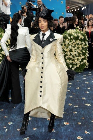 I very much respect Janelle Monáe’s commitment to looking like a robot (except that one weird couple of months where she was showing her tits a lot which I also very much respect) and I love Thom Browne with my whole heart, but the bowler and monocle are veering too far into Mr. Monopoly territory and thus I must say, I don’t like how it looks.
